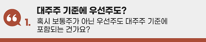 주식 매매를 할 때 보통주와 우선주의 주식 종목 코드가 다르다 보니 각각 대주주를 판단하는 줄 알고 계시는 투자자분이 종종 있는데요.