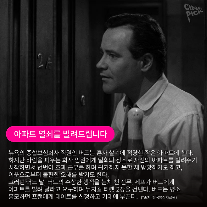 고전영화부터 다큐멘터리까지 '아파트'가 주인공인 영화들을 고루 모았으니, 노래와 함께 즐겨보아요