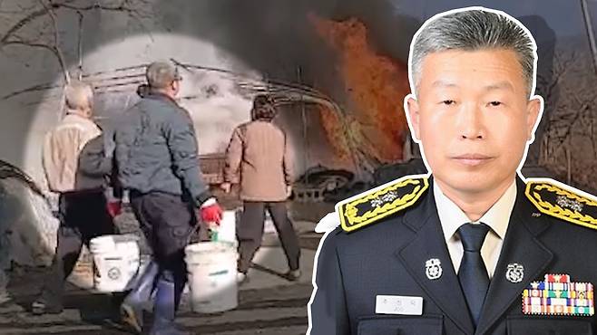멀리서 시커먼 연기가 피어오르자 여기 이 남성이 맨몸으로 달려나갑니다. 잠시 후 또 다른 남성는 소화기를 챙겨 들고는 화재 현장으로 내달립니다.