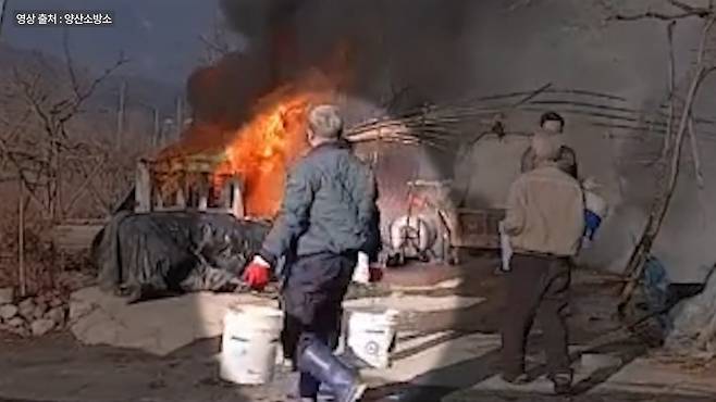 건조한 날씨 탓에 인근에 있던 아궁이의 불씨가 되살아나면서 화재가 시작됐다고 하는데요, 마침 베테랑 소방관이 그곳에 있어 주민들이 1년 내내 고생해 수확한 전 재산을 지켜낼 수 있었습니다.