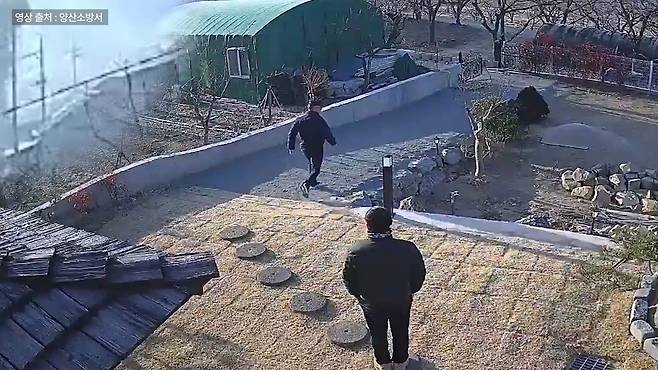 위기의 순간에 이런 현명한 결정을 내린 성덕씨. 사실 그는 양산소방서 소속의 31년차 베테랑 소방관입니다. 연기 냄새에 마당에 나와본 것도, 연기 모양으로 화재를 직감한 것도, 비닐하우스를 포기한 것도 베테랑 소방관의 촉이었던 겁니다.