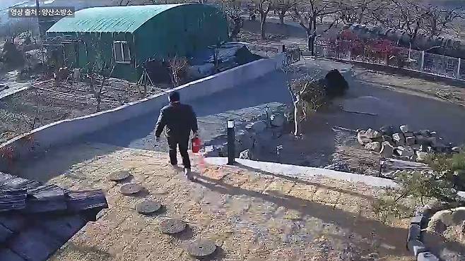 농수로 물로는 더 이상 버티기 어려워진 그때. 한 주민이 성덕씨의 집으로 달려가더니 소화기를 가져와 건넸고, 덕분에 나무 쪽으로 번지는 불길도 막을 수 있었습니다.