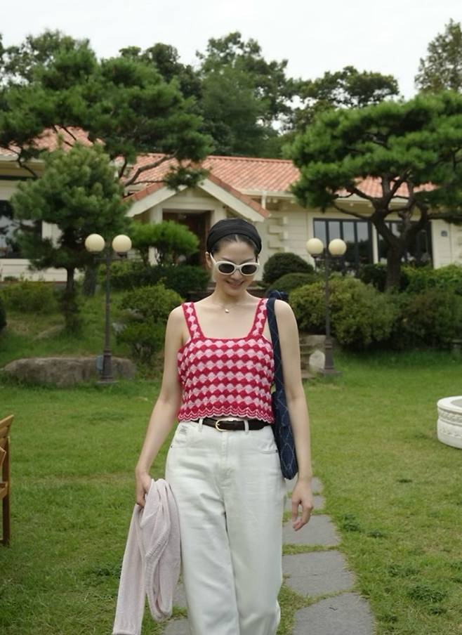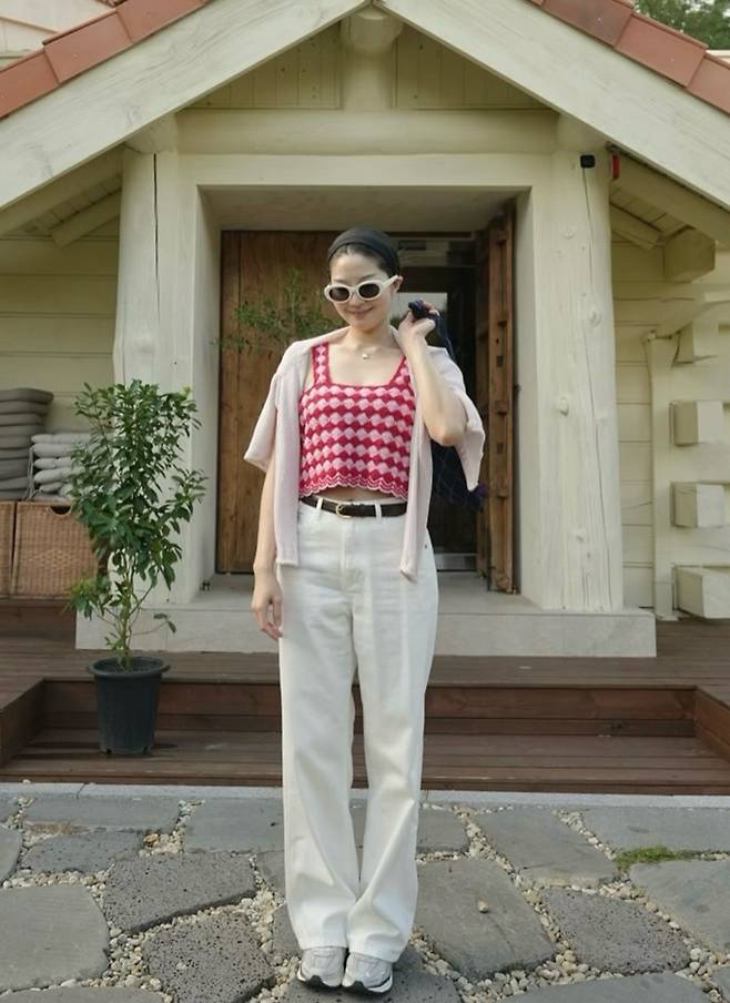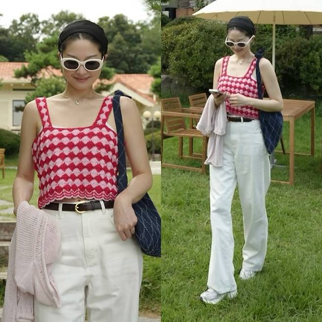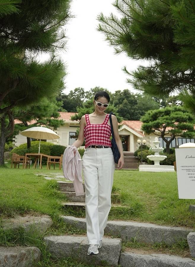 공개한 사진에서 류이서는 레드와 핑크 톤이 어우러진 체크 패턴의 니트 슬리브리스 톱에 화이트 하이웨이스트 팬츠를 매치한 외출 스타일로 경쾌하면서도 감각적인 데이트룩을 완성했다.