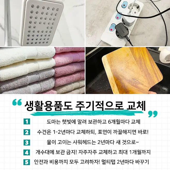 일상에서 자주 쓰는 물건일수록 더욱 교체시기를 신경 써야 하는데요~ 교체 시기가 지나면 교체해줘야지 건강에도, 생활에도 좋답니다!