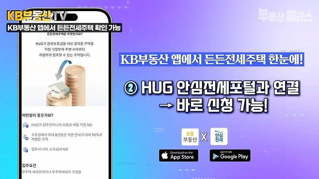 📍 KB부동산 앱 – 매물 정보 한눈에! HUG 전용관 개설(HUG 안심전세포털과 연결-> 바로 신청 가능!)