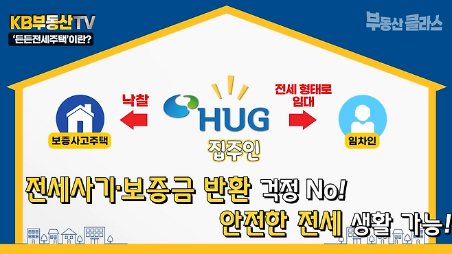 ‘든든전세주택’은 HUG 주택도시보증공사에서 경매 등을 통해 확보한 주택을 무주택자에게 전세로 임대하는 공공 주거 지원 사업입니다.