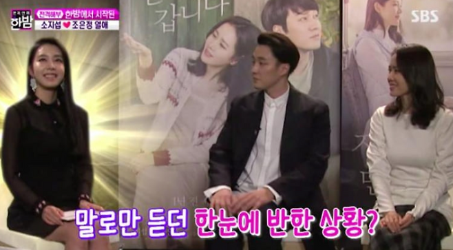 소지섭과 조은정은 2018년 3월 영화 ‘지금 만나러 갑니다’ 홍보차 SBS ‘한밤의 TV연예’에서 배우와 리포터로 처음 만났습니다.