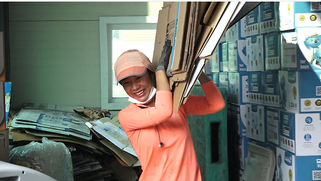 무일푼으로 시작해 어엿한 고물상 사업의 주인이 된 모습은 유미 씨에게 롤모델이 되었지요. 무엇보다 나이제한도 자격요건도 없이, 그저 일하는 만큼 벌 수 있다는 점이 큰 매력으로 다가왔는데요. 부지런히 모은 고물의 중량을 재는 계근대에 오르면 하루 노동한 만큼 정직하게 돌아오는 현금이 짜릿한 희열을 주는 것입니다.