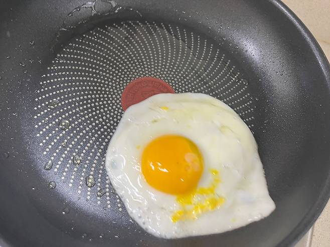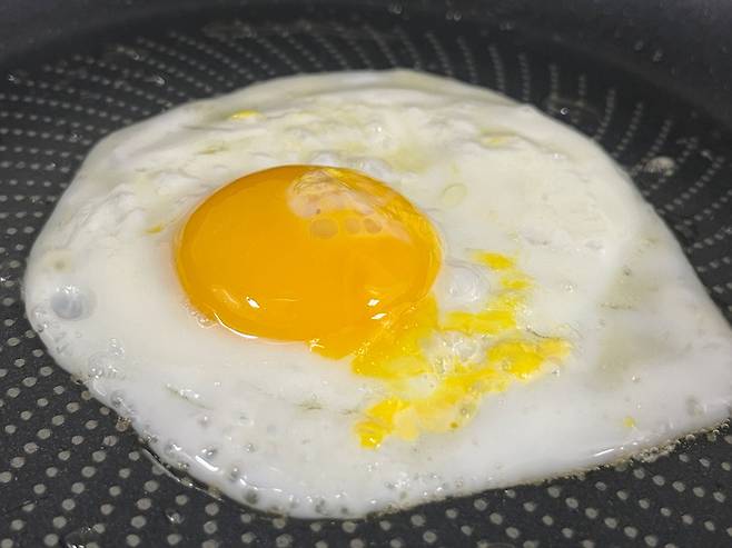 반숙 계란 후라이를 만들 때 뚜껑을 덮어 스팀으로 익히는 방법도 많이 쓰입니다. 하지만 잘못하면 계란 노른자 위에 흰자가 남아 하얗게 뿌옇게 덮이면서 노른자의 선명한 색감이 사라지고 식감도 탁해질 수 있습니다.