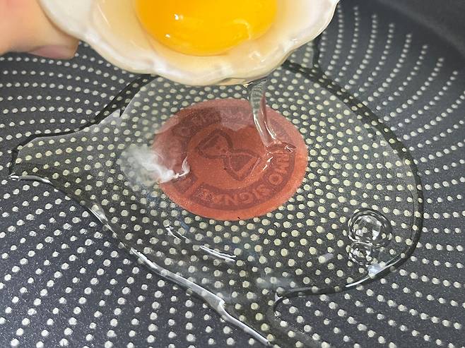 그릇에 담긴 계란은 흰자를 먼저 팬에 부어 줍니다. 그리고 노른자를 살포시 그 위에 얹어 주세요. 노른자가 바닥에 직접 닿지 않아 속은 촉촉한 반숙, 겉은 깔끔한 계란후라이를 만들 수 있습니다.