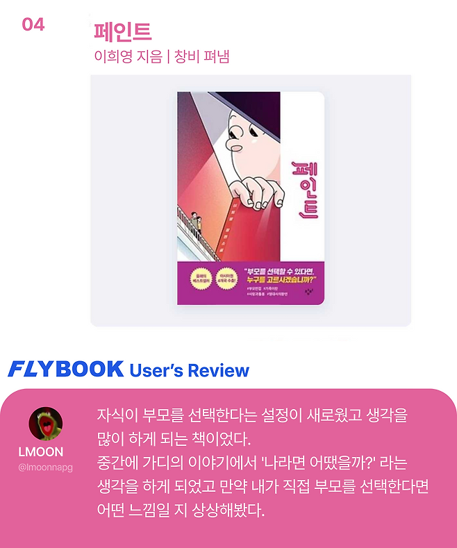 자식이 부모를 선택한다는 설정이 새로웠고 생각을 많이 하게 되는 책이었다.