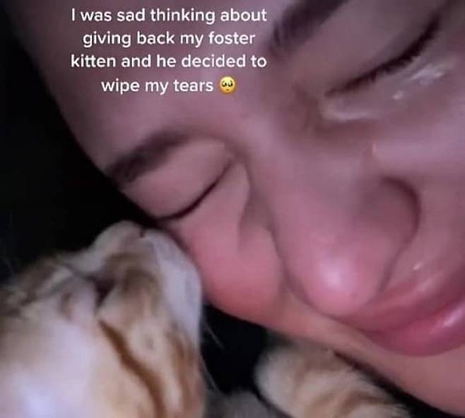 그 사이 무척 많은 정이 들었던 것일까. 임시 보호 중이던 새끼 고양이를 떠내보내야만 하는 여성이 있습니다.