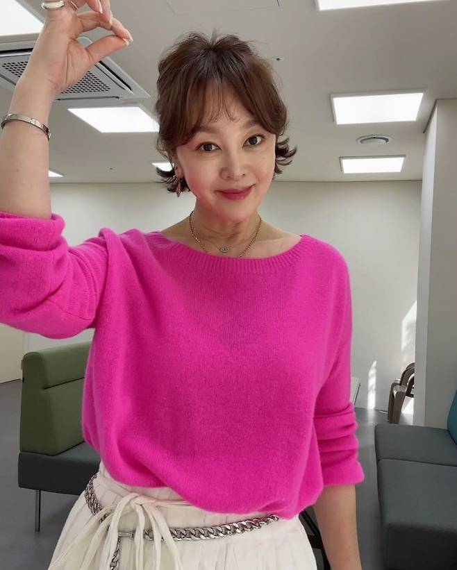 그녀는 “날이 너무 아름답게 푸르렀어요”라는 글과 함께 새 스튜디오에서 촬영한 비하인드 컷을 공개했다. 따뜻한 감성 예능 <아빠하고 나하고> 녹화를 마친 듯 보이는 이 장면에서 가장 인상 깊은 건 단연 그녀의 착장. 핫핑크 컬러 니트는 이승연 특유의 밝고 생기 있는 에너지를 그대로 반영하는 듯하고, 자연스레 흘러내리는 듯한 실루엣이 여유로운 분위기를 자아낸다.