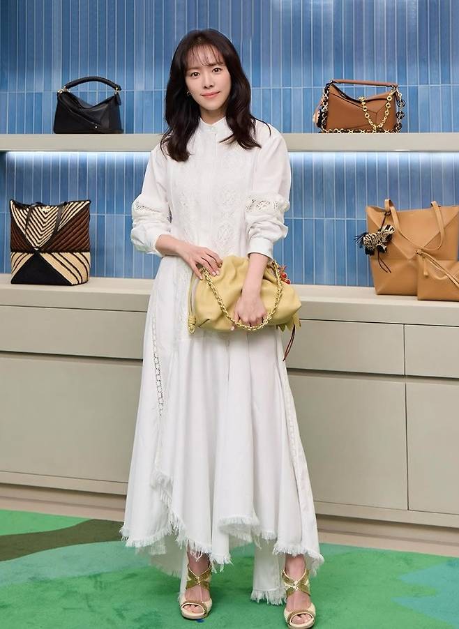 공개된 사진 속 한지민은 밑단이 헤진 화이트 원피스룩으로 럭셔리 핸드백 매장을 둘러보며 즐거운 시간을 가졌다.