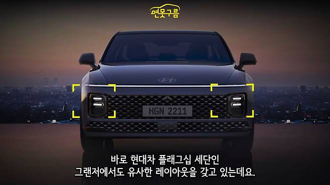 그런데 이 영역을 잘 보시면 헤드램프와 그릴 영역에 있어서 어디서 본 것 같은 디자인이죠? 바로 현대차 플래그십 세단인 그랜저에서도 유사한 레이아웃을 갖고 있는데요. 차이점은 그랜저는 세단이라서 전고가 훨씬 낫죠. 그랜저는 현대차의 최신 디자인 룩이고요. 팰리세이드와는 같은 플래그십 차량이라서 디자인에서 유사성이 있겠죠.