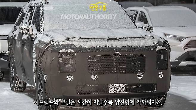 헤드램프와 그릴 영역이 잡혀있다는 점은 큰 틀의 디자인은 확정이 되어 있다는 것이죠. 네모난 수직형 디자인의 헤드램프와 더욱 비중을 크게 확대한 그릴은 정통 SUV 디자인으로 출시될 거란 점을 짐작할 수 있게 하고요.