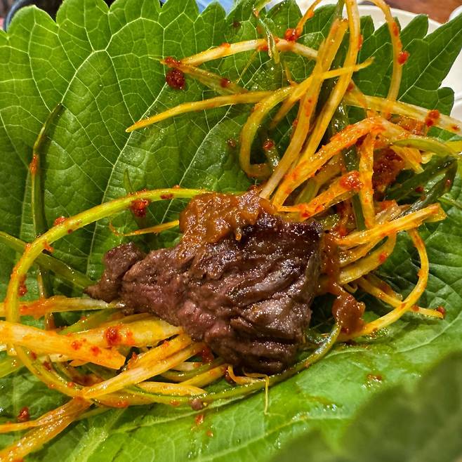 고기를 주문하면 내어주는 파절이와 함께 싸먹어도 맛있고 소금에만 살짝 찍어먹어도 고기 본연의 맛이 잘 살아난다. 화력이 좋기 때문에 고기도 금방 익어 타지 않게 주의해야한다. 부드럽고 쫄깃한 토시살은 된장찌개와 조화가 좋다.