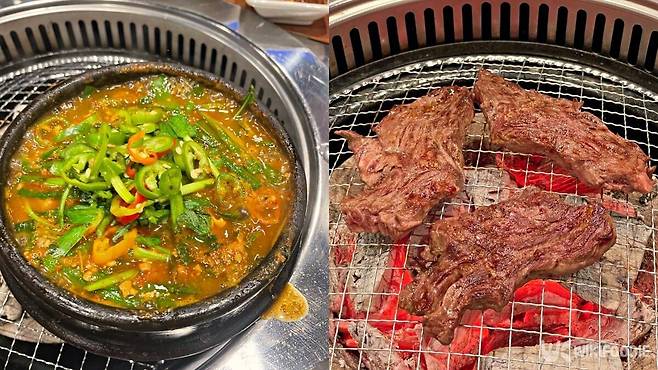 점심으로 된장찌개만 먹을 수 있는 시간은 오후 2시까지다. 그 외 시간에 된장찌개를 먹으려면 고기 식사를 해야 된장찌개 추가 주문이 가능한 시스템이고, 매장에는 돼지고기는 없고 소고기만 판매한다.