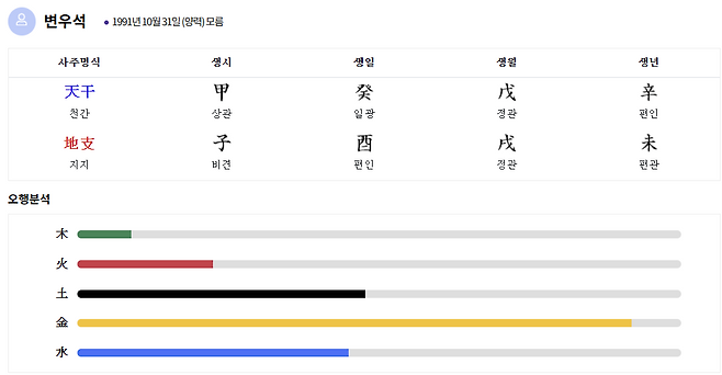 변우석과 아이유처럼 사주명식을 통한 연애궁합을 확인하고 싶다면, 운세의신 '나와 스타의 궁합'에서 궁합점수를 확인해보세요! 💫