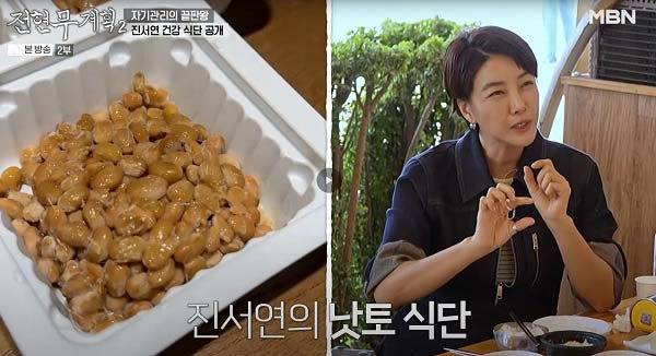 진서연은 낫토를 삼시세끼 먹었다고 밝혔지만, 일반적으로 하루 1팩 정도가 적당하며, 소스가 포함된 낫토는 나트륨 함량이 높으므로 고혈압 환자는 주의가 필요하다.