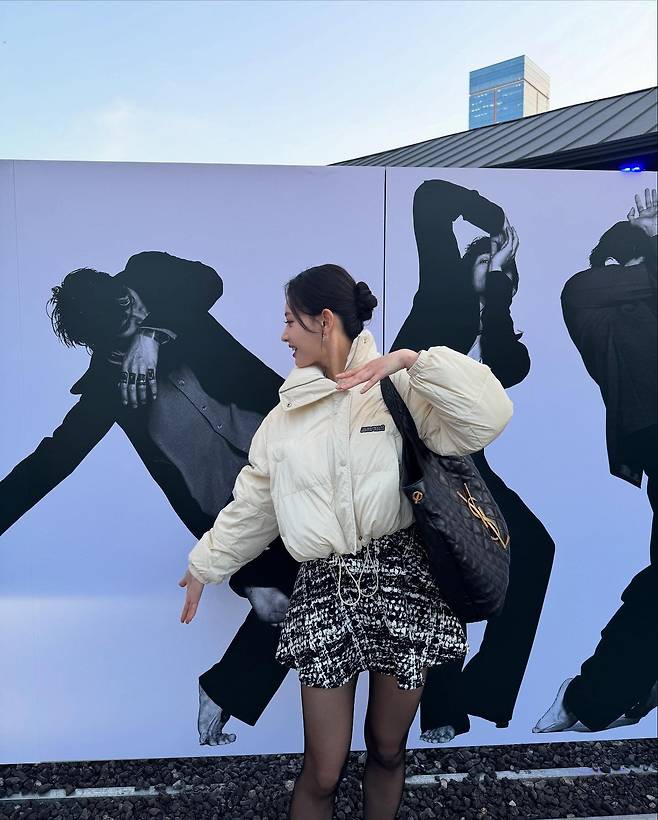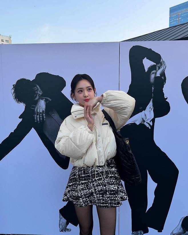 최근 사진 속에서 보여준 스타일은 머리카락을 뒤로 차분하게 모아 정리한 묶음 머리로, 깔끔하면서도 단아한 매력이 돋보입니다