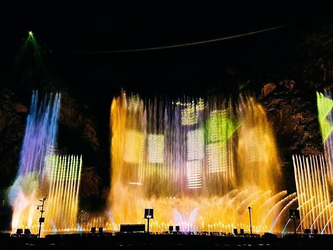 야간에는 국내최대 규모의 분수쇼 나오라쇼가 있습니다. 토요일에만 운영