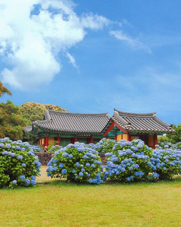 혼인지는 제주 스몰웨딩, 웨딩 스냅 촬영 장소로 추천할 만큼 운치 있고 예쁜 관광지로 손꼽히는 유적지인데요. 5월이면 피어나는 수국이 가득해지는 제주 수국 명소가 됩니다.
