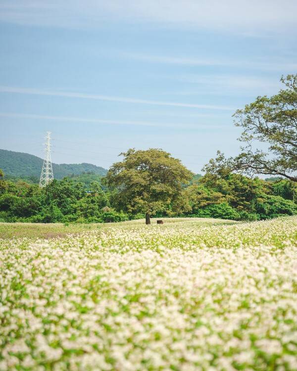 제주 북동부에 위치한 중산간 마을인 와흘리는 ‘메밀마을’이라는 별칭답게 봄이 끝나갈 무렵이 되면 소금을 뿌린 듯 흰 꽃으로 뒤덮인 메밀밭이 펼쳐 쳐지는데요. 와흘리 메밀밭은 이모작을 해서 봄과 가을에 하얀 메밀꽃을 만나볼 수 있습니다.