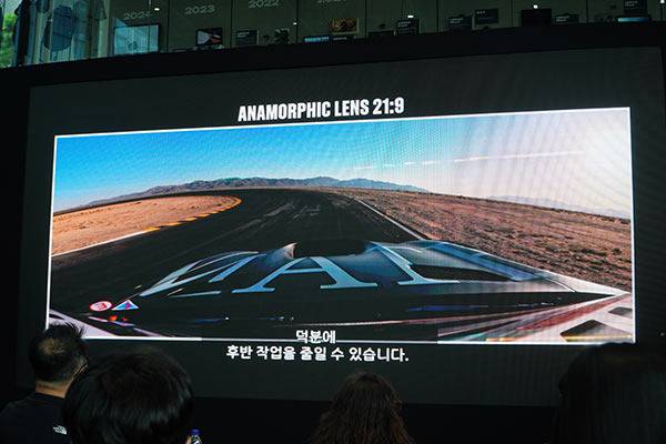 이번 렌즈는 아직 출시되지 않은 렌즈다. 바로 애너모픽 렌즈로 영화 제작 등 크리에이터가 주로 사용할 수 있는 렌즈다. 애너모픽 렌즈는 시네마틱 21:9, 초광각 16:9 화면 비율을 지원하며 왜곡을 최소화한 초광각 촬영 역시 지원한다.