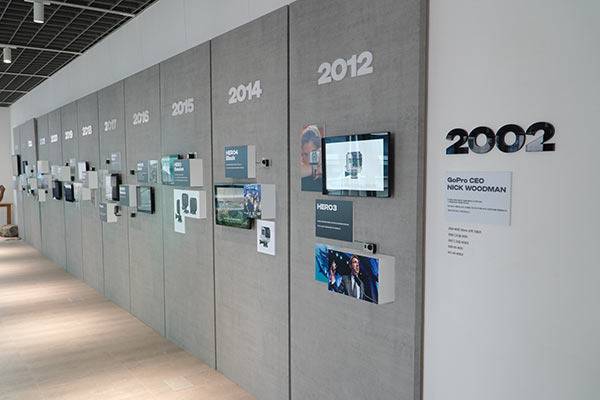 2층에는 고프로의 역사월이 마련되어 있었다. 2002년 히어로3부터 시작한 역사월은 히어로 라인업 외에도 맥스, 세션 등이 마련되어 있어 향수를 자극했다.
