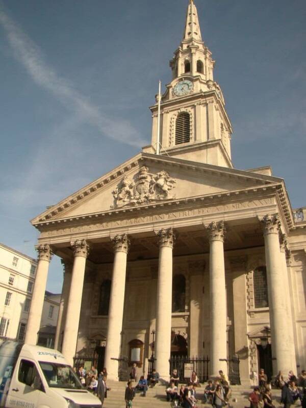 교회 주변은 현대적인 고층 빌딩들로 둘러싸여 있어요. 오래된 시계탑과 현대 건축물의 대비가 만들어내는 독특한 풍경을 감상해보세요. 런던의 숨겨진 매력을 발견할 수 있을 거예요.
