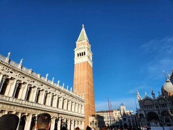 시계탑 옆의 종탑에 올라가면 베네치아의 아름다운 전경을 감상할 수 있어요. 붉은 지붕들과 푸른 바다가 어우러진 모습은 잊지 못할 추억이 될 거예요.