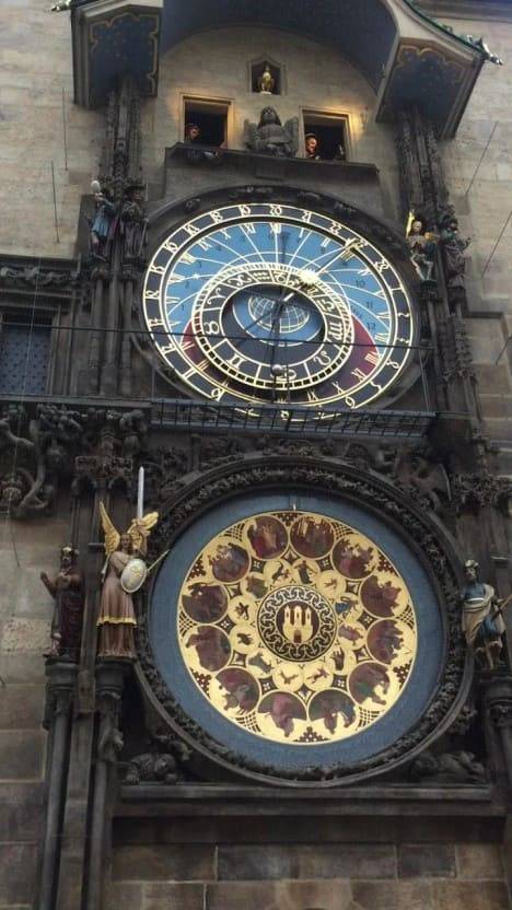 시계의 상단부에는 노동자, 화학자, 농부 등 다양한 직업을 가진 사람들의 모자이크가 그려져 있어요. 이는 사회주의 시대의 영향을 받은 것이죠. 매일 정오에 울리는 종소리와 함께 움직이는 인형들의 모습은 꼭 한 번 봐야 할 장관이에요.