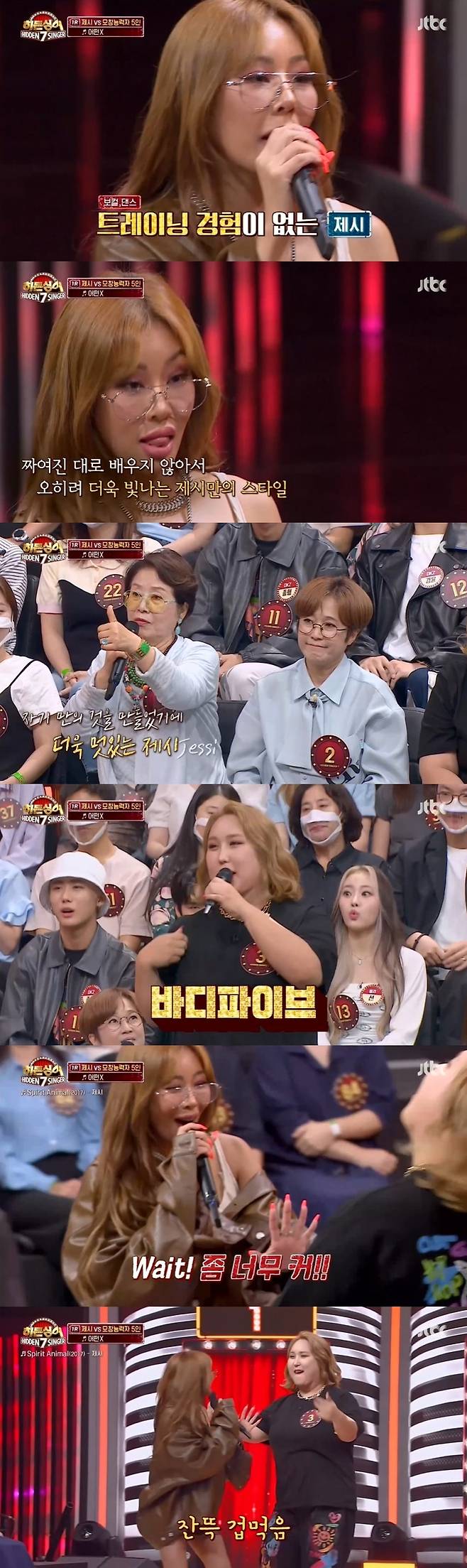 제시는 "저는 자신감을 가지고 노래를 부른다. 누구를 흉내 내지도 않고, 트레이닝을 받은 적도 없다. 트레이닝을 받았으면 정말 너무 잘했을 거라고 한다"라고 설명했다.