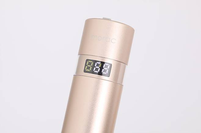 본체 앞면의 약간 위쪽에는 원기둥이 살짝 파여 있는 곳이 있는데, 여기에 디스플레이가 위치해 있어서 작동 상태를 표시해주는 역할을 한다.