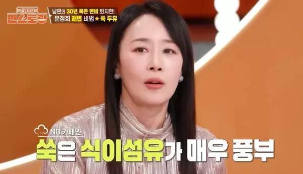 배우 문정희(50)가 변비에 좋은 '쑥 두유 레시피'를 공개했습니다!