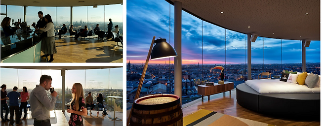 특히 사방이 유리인 기네스 스토어하우스 7층에 위치한 ‘그래비티 바’는 더블린 시내를 360도 파노라믹 뷰로 감상할 수 있어 인기입니다. 박물관 투어를 다 마쳤다면, 기네스 스토어 하우스 7층 바에서 티켓 가격에 포함된 1회 음료 쿠폰으로 기네스나 홉하우스13(기네스 사에서 내놓은 2nd 브랜드 라거)을 즐길 수 있습니다. 더블린 시내가 한눈에 내려다 보이는 전경을 감상하며 시원한 기네스나 홉 하우스13을 즐겨봅시다. 아주 꿀맛일 것입니다.