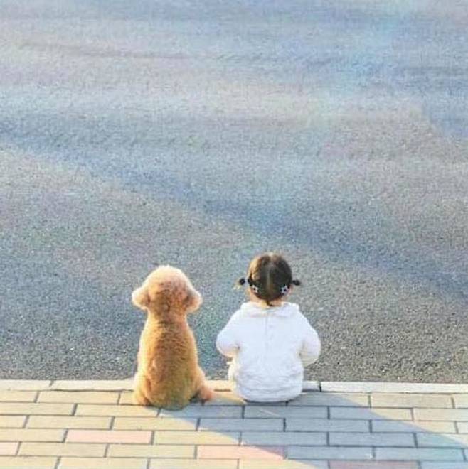어느새 댕댕이랑 딸이 나란이 보도블럭에 앉아있는게 아니겠어요