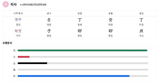 사주명리학으로 본 리사의 애정운,