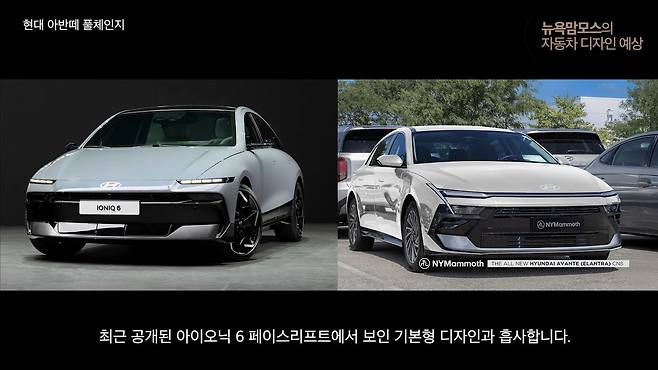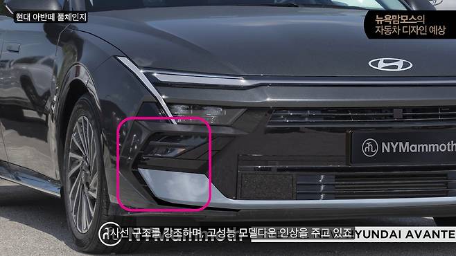하단 범퍼를 장식하는 스키드 플레이트 형상은 최근 공개된 아이오닉 6 페이스리프트 디자인과 유사한 점이 발견되고 있어, 이것이 추후 아반떼 N 모델의 차별 포인트로 사용될 가능성도 충분히 엿보인다.