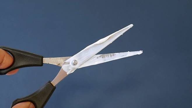 가위, 칼에 묻은 끈끈이 제거 – 테이프 잔여물 제거에 효과