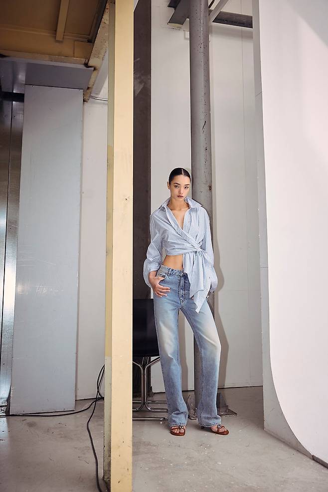 함께 매치한 스트레이트 실루엣의 데님은