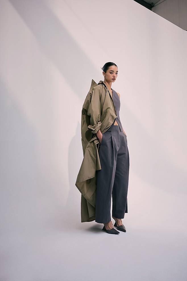 여유로운 실루엣의 트렌치코트를 선보였어요.