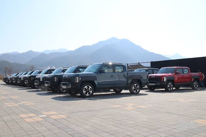 현장에 도착하니 수많은 시승차들이 현장을 가득 메우고 있다. 오늘은 타스만을 타고 주변 도로는 물론이고 임도, 그리고 별도로 마련한 오프로드 코스를 달리면서 타스만의 여러 성능을 파악해보는 일정이다. 행사에 함께 한 기아 국내사업본부 정원정 부사장은 “타스만은 기아가 처음으로 만든 픽업트럭으로, 연구부터 생산까지 많은 고심을 했다. 같은 프레임 온 바디 타입인 모하비도 있었지만 타스만은 처음부터 완전히 새롭게 만들었고, 세계 여러 곳에서의 수많은 테스트를 통해 어려운 부분을 개선해 오늘 소개할 수 있게 되어 기쁘게 생각한다”며 자부심을 드러냈다.