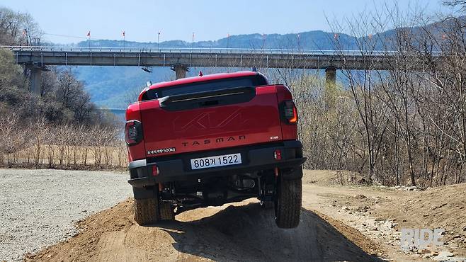다만 한발 한발 나아갈 때마다 온몸이 좌우로 크게 요동치는 모습에서 픽업 트럭의 한계가 나타나긴 한다. 조금 더 안정적인 승차감을 보여주면 좋겠지만 어쩔 수 없는 것이 픽업 트럭의 본질인 적재량을 위해 리프 스프링을 적용할 수밖에 없기 때문. 그래도 흔들림을 억제하기 위한 개발진들의 노력이 더해져 다른 픽업에 비해선 흔들림이 덜해 창문이나 B 필러 등에 머리를 부딪히는 일은 없었다.