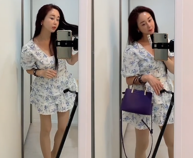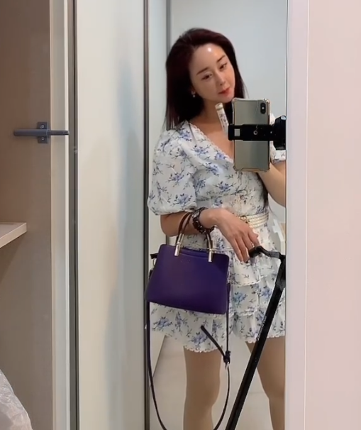 함소원은 러블리한 무드를 뽐내며 꽃무늬 퍼프 소매 상의와 숏팬츠를 입고 스타일리시한 모습을 선보였습니다. 이 룩은 그녀의 여성스러운 매력을 잘 살리면서도 편안한 느낌을 주는 스타일입니다. 또한, 그녀는 진한 퍼플색 핸드백을 매치하여 포인트를 주었으며, 룩에 세련된 느낌을 더해주었죠.