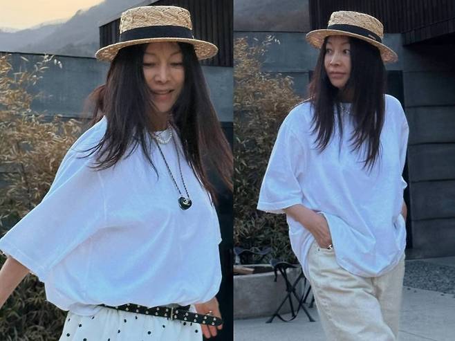 여기에 황신혜는 챙이 넓은 스트로 햇을 더해 햇살을 피하면서도 멋을 살리는 패셔니스타 모먼트를 뽐냈습니다.