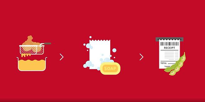 하지만, 한국 대학생들은 브랜드의 슬로건을 버리지 않으면서도 KFC를 안전하고 즐겁게 즐길 수 있을까를 고민하였고, 영수증을 종이비누로 이용하는 아이디어를 제안합니다. 치킨을 튀기고 남은 기름을 재활용하여 종이비누로 만들어 고객들이 손을 씻을 때 사용하는 방법을 제안하였는데요. 브랜드 마케팅 관점에서 친환경 요소를 브랜드 슬로건과 결합하여 좋은 평가를 끌어냈습니다.