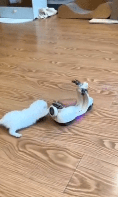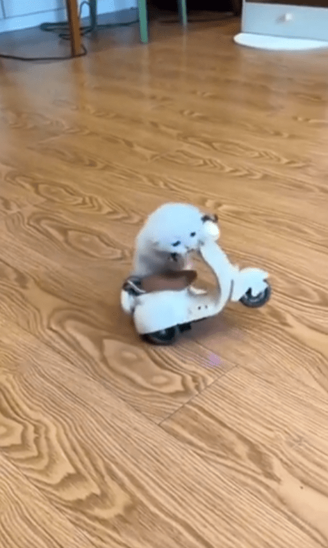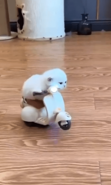 작은 몸집의 새끼 고양이 한 마리가 실내 바닥 위, 장난감 오토바이에 올라탔습니다. 헬멧도 없고 면허도 없지만, 그 눈빛만큼은 누구보다 진지합니다. 앞발을 핸들 쪽에 얹고 균형을 잡은 채 마치 진짜 운전하듯 꼼꼼하게 자세를 가다듬습니다. 아직 몸에 딱 맞지 않는 큰 장난감에 올라탄 모습은 살짝 어색하지만, 그 속엔 꽤나 그럴싸한 ‘드라이버’가 숨어 있습니다.