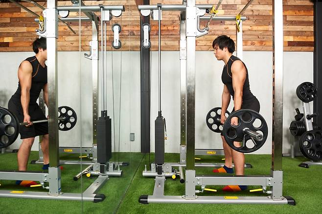 ์๋ฉ์ด๋ฅผ ๋ค๋ก ๋นผ๋ฉด์ ์์ฒด๋ฅผ ์์ด๊ณ ๋ฌด๊ฒ๋ฅผ ๋ ๋ค.
